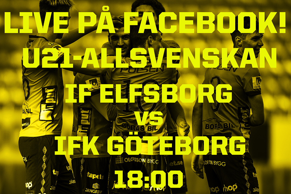 Publicerad: 2017-05-24 11:05, Uppdaterad 2017-05-24 11:23Kvällens match mellan IF Elfsborg och IFK Göteborg i U21-Allsvenskan på Borås Arena sänds LIVE på Elfsborgs Facebooksida. Sändningen startar strax innan 18:00.