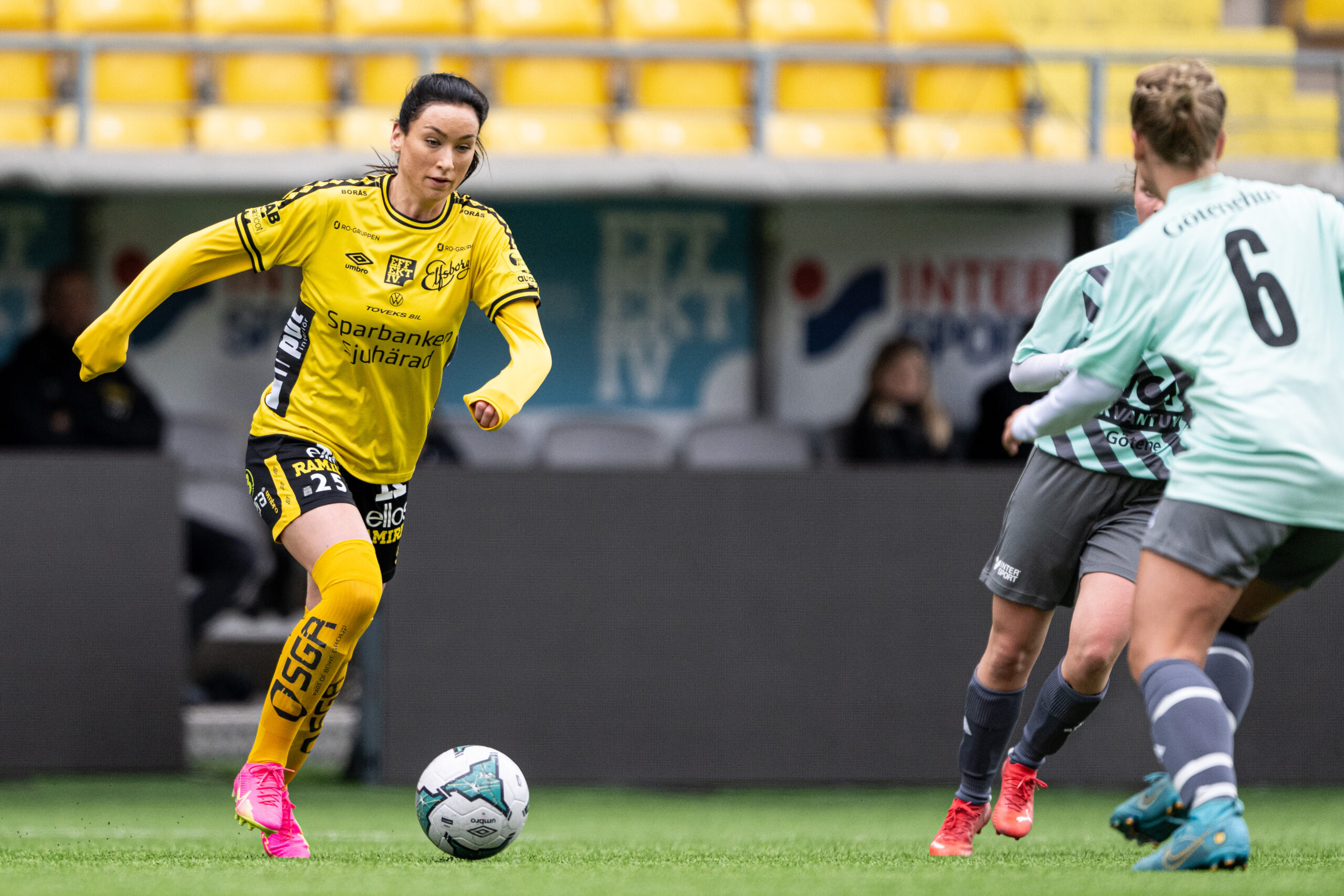 Det skulle inte bli något målfyrverkeri på samma sätt denna afton, men det var Elfsborg som hade bra kontroll på händelserna och skapade ett antal chanser. Även hemmalaget vaskade fram ett par lägen, bland annat ett skott i ribban, men det var Elfsborg som skulle ta ledningen när Izabella Bergström sköt in 1–0 i den 34′ minuten efter ett fint inspel, ett resultat som stod sig in i paus.