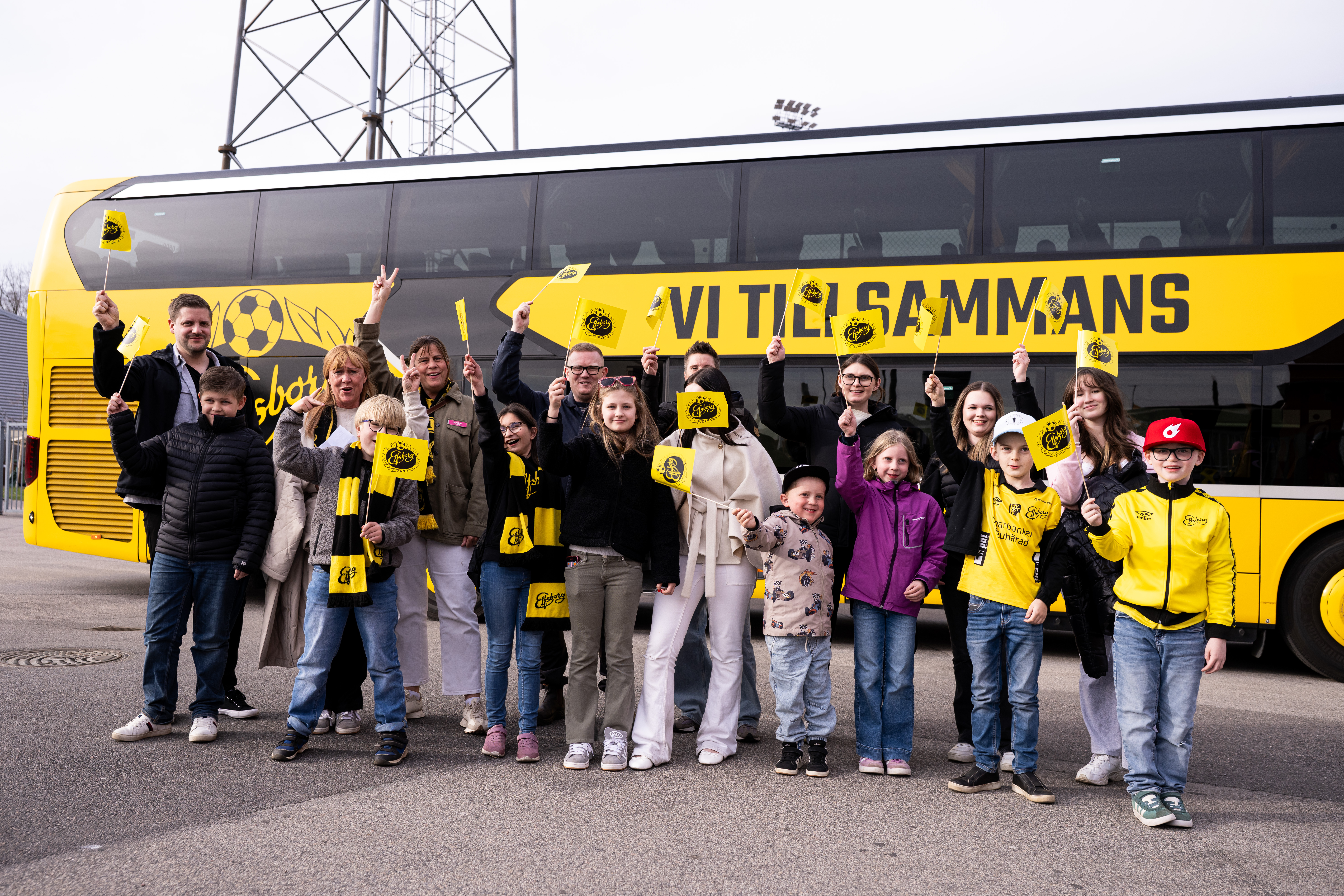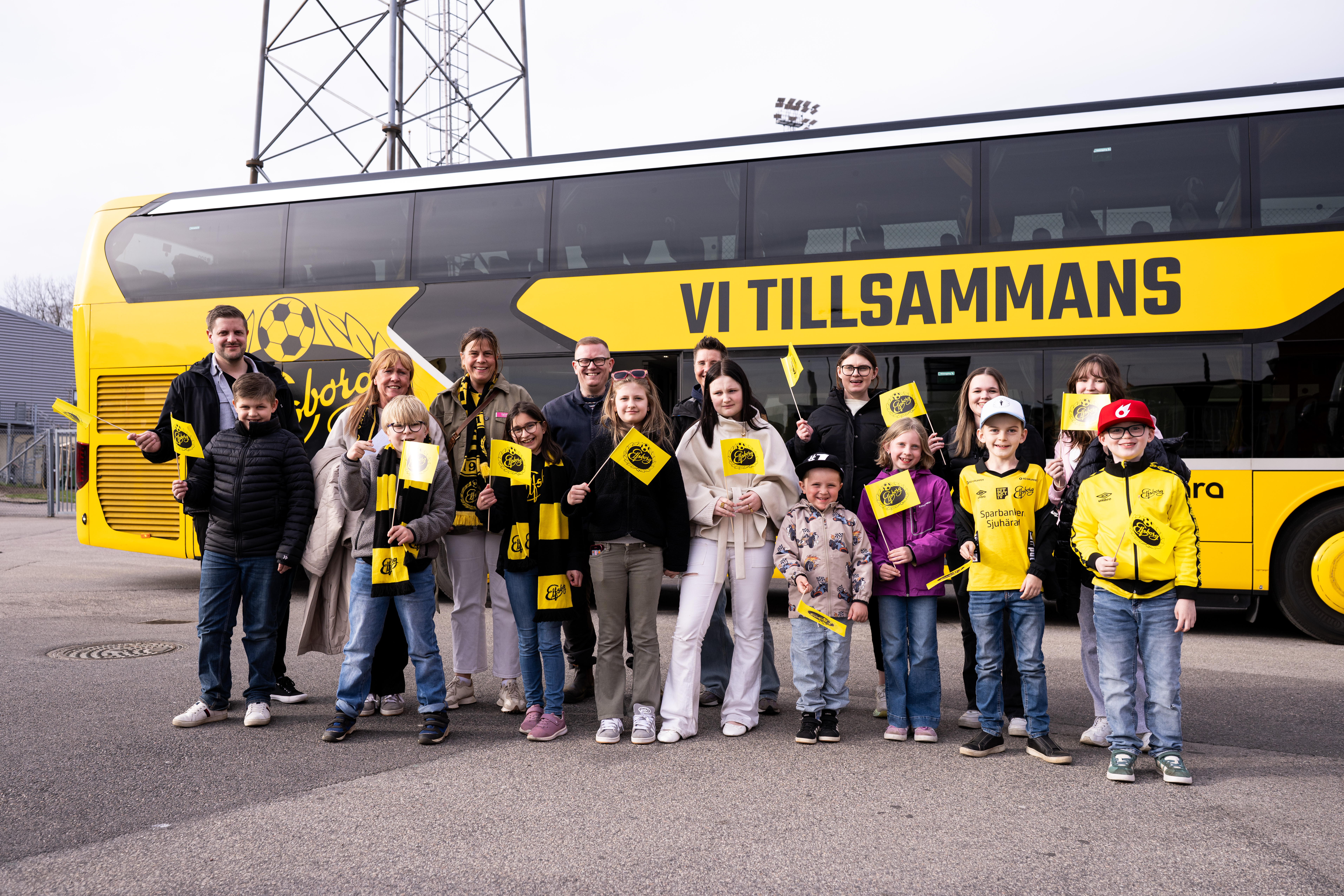 När bussen rullat in på Borås Arena fick alla barn varsin Elfsborgspåse med gåvor och flaggor att heja fram laget med. De fick sedan ta plats på vår föreningsläktare, och tillsammans med resten av alla Elfsborgare på plats fick de se di gule ta en viktig trepoängare genom ett sent avgörande. Det blev med andra ord en minst sagt spännande och lyckad kväll på Borås Arena!
