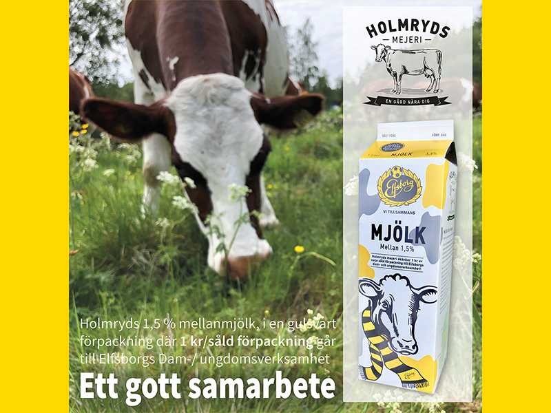 IF Elfsborg är mycket glada att presentera Holmryds Mejeri som ny samarbetspartner. Nu lanserar vi Elfsborgsmjölken som redan idag återfinns i flera butiker runt om i Borås. En god mjölk iklädd en snygg mjölkförpackning i gulsvarta färger. Mums!
